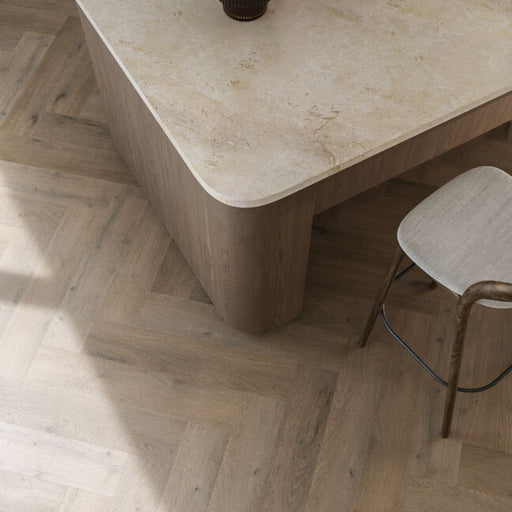 Die Belakos Palazzo Fischgrät XL 74 Rigid Klick ist ein Vinylboden im großen Fischgrätformat mit einer hellen, natürlich wirkenden Holzoptik. Die m...