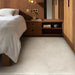 Der Vinylboden im Fliesenformat passt gut in Wohnräume, Küchen, Flure und Badezimmer. Die helle Steinoptik bringt Ruhe in moderne und minimalistische Innenräume. Das Fliesenformat sorgt für ein präzises Fugenbild und eine klare Linienführung.
